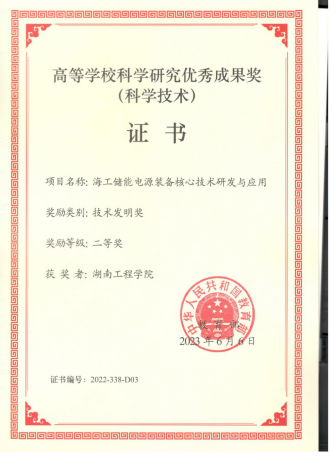“大型风电机组提升服役性能关键技术及应用”项目由湖南大学黄守道教授主持完成,其中,我院刘婷老师参与多绕组模块化永磁风力发电机的相关研究工作,提出永磁风力发电机设计方法,谢秋月老师参与多绕组模块化永磁风力发电机及其变流系统拓扑结构的相关研究工作,提出永磁风力发电机优化设计和控制方法。“海工储能电源装备核心技术研发与应用”项目由湖南大学王俊教授主持完成,我院赵振兴老师参与了该项目总体方案的设计,主要承担海工储能电源控制系统设计工作,参与了SiC功率器件智能驱动的研制。