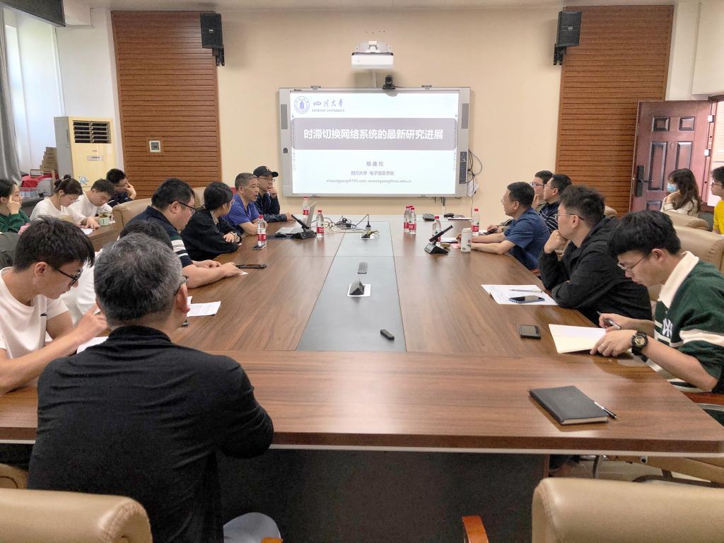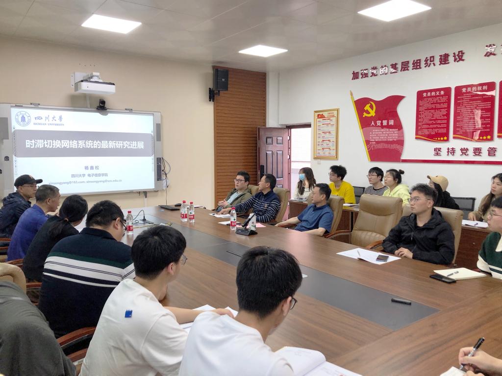 5月9日上午,四川大学“群体智能与控制”实验室负责人、博士生导师、教授杨鑫松应邀来校,在电气楼407会议室作《时滞切换网络系统的最新研究进展》的专题讲座。会议由党委委员、副校长罗毅平主持,海角在线社区视频副院长林国汉及师生代表参加学习交流。