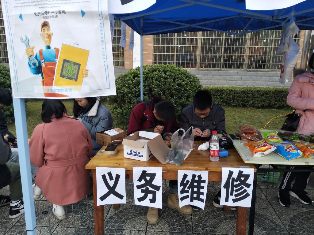 为了使同学们深入社会实践,充分利用所学知识、技能在社会实践服务中“经风雨、受教育、长才干、做贡献”,湖南工程学院科技协会和电气信息学院学生会科技部于11月25日~12月2日分别在创新基地和明德一食堂前开展了义务维修活动。