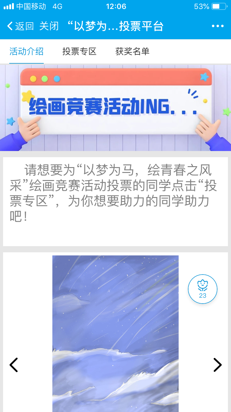本次活动是面向海角在线社区视频全体学生,通过评审小组评定和投票结果(各占50%)评选出来。本次活动一经开展就有许多同学积极投稿,绘画形式多种多样。作品被上传至学校的易班平台,由同学们积极参与投票。我院征集到的作品种类丰富,参赛者紧扣主题发挥自身想象创作出一幅幅精美而有创意的作品,同学们的发散性思维更是使作品内涵丰富,无不展现着自己扬帆起航,披荆斩棘、不畏艰险,迎难而上的坚定志向与青春风采。