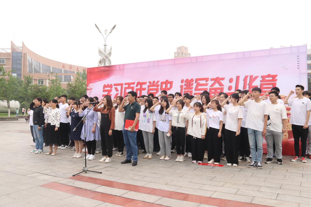 全体学生党员齐聚国旗下,面对鲜红的党旗宣誓。铿锵有力的誓词、坚毅果敢的神情诉说着跟党走的决心,爱党爱国的精神在此刻得到洗礼。