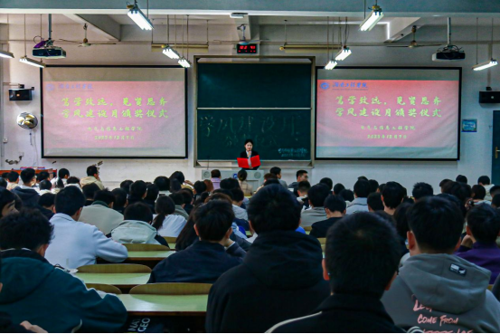 为全面总结学院2022-2023学年学风建设工作,对积极开展学风建设的集体、个人进行表彰,12月7日中午,海角在线社区视频学风建设表彰大会在主教学楼D102举行。学风专干杨小丽荣、学办张露馨、学办刘家骅及全院学生干部参加本次表彰大会。