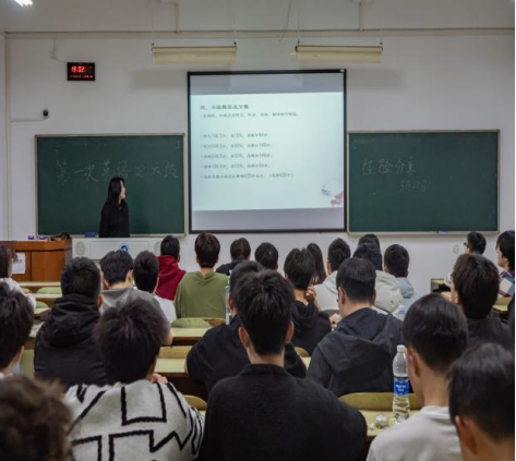 祝杨帆同学以四六级考试流程为切入点,复习时间为总路线,详略得当地讲述了各个题型的做题方法和技巧,主要分享了听力、写作、阅读理解、翻译、段落匹配等题型的高分秘诀和拿分攻略,并配以各种真题的讲解,全方位分析了四六级考试的各个关键点。祝杨帆告诉同学们四六级复习关键要遵循“听说看写,日常积累”的方法,要将备考四六级枯燥的流程,巧妙地融入日常生活中,在玩中学、在学中玩,极大增强了同学们的备考信心。现场不时有同学举手提问,祝杨帆一一解答了同学们的疑惑。