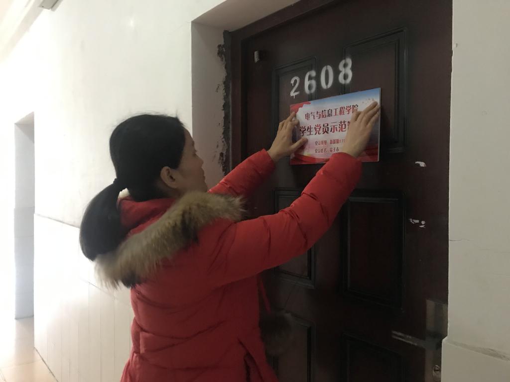 学生宿舍既是学生学习、生活和交流的重要场所,也是学生互相影响的中介,良好的学生宿舍氛围能起到激励作用。党员宿舍挂牌活动,不仅提高学生党员的党员意识、责任意识、先锋模范意识,更好的发挥党员的模范作用,同时使党员主动在师生面前亮出党员身份,自觉接受学生群众和党内其他成员的监督。