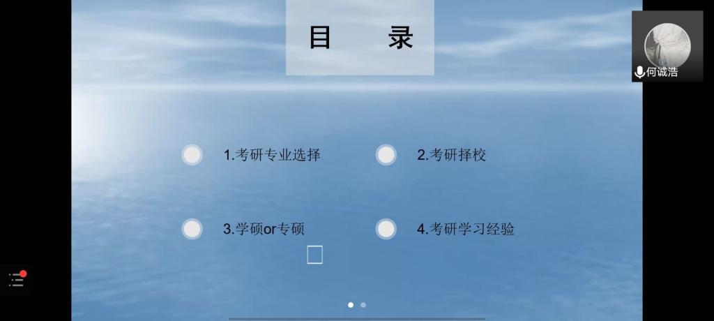 考取了西南交通大学的电子信息1801班党员杨沛璨同学向学弟学妹们分享了他各科目的学习方法和信息获取的方式,他认为,学习英语应注重单词的积累,复习政治要在理解的基础上进行记忆,而数学讲究多思多练,多刷真题。已被华东理工大学录取的新能源1802班党员何诚浩同学给大家一些考研择校及专业选择方面的建议,“选择报考学校至关重要,专业课难度、学校招生人数、历年分数线、学长学姐的反馈、初试占比、结合自己的实际情况等等,这些方面都大家需要提前了解和准备。”分别被湖南师范大学、广东工业大学录取的党员易婧鸿和党员朱拓基认为,备课过程中应合理调整心态,正确对待焦虑,当在学习过程中遇到瓶颈时,要学会用适当的方式排解负面情绪。