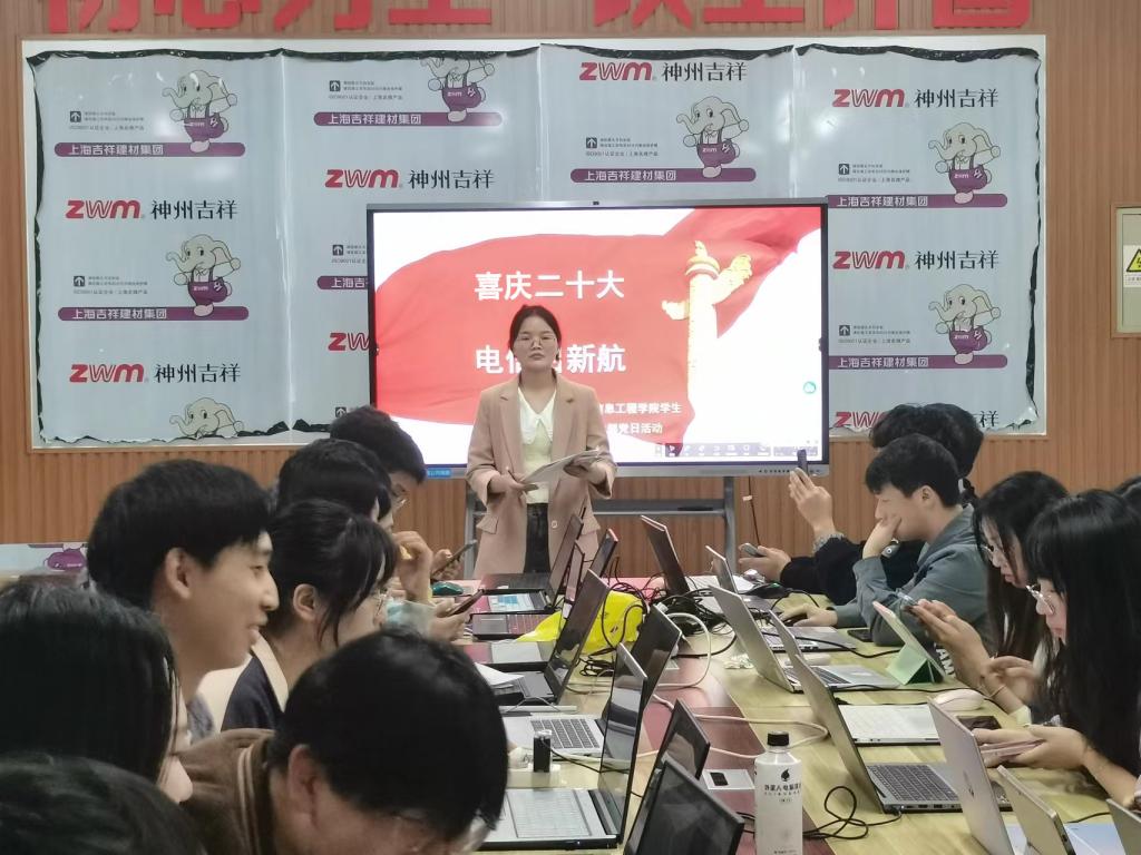 11月5日晚上,海角在线社区视频学生党支部在电气楼115举行“喜庆二十大·电信启新航”主题党日活动,共同学习党的二十大精神,以实际行动响应党的二十大胜利召开。支部书记屈佩斯主持会议并传达习近平总书记在党的二十大报告中关于青年的重要指示精神,引领学生党员加深对于自身专业的认知,党支部全体党员参加学习。