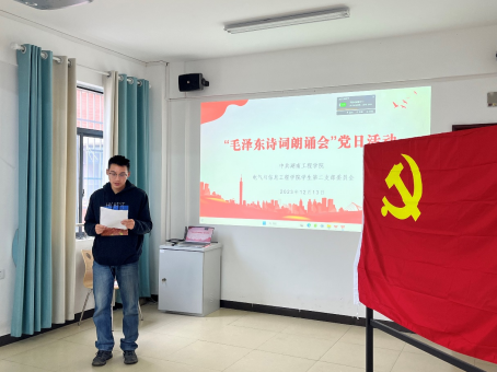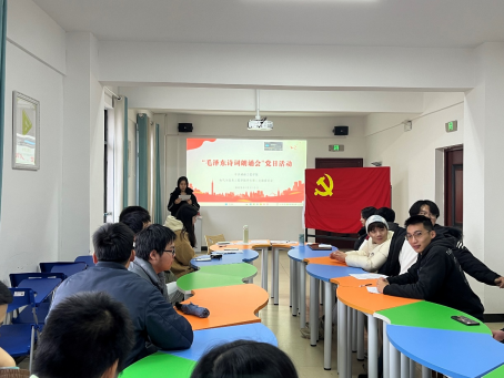 在此次“最美读书声一一毛泽东诗歌朗诵会”主题党日活动中,同学们互相交流,相互分享,共同探讨毛泽东诗歌作品的艺术魅力和历史意义,希望我们努力传承和发扬革命精神,为实现中华民族伟大复兴的中国梦而努力奋斗。