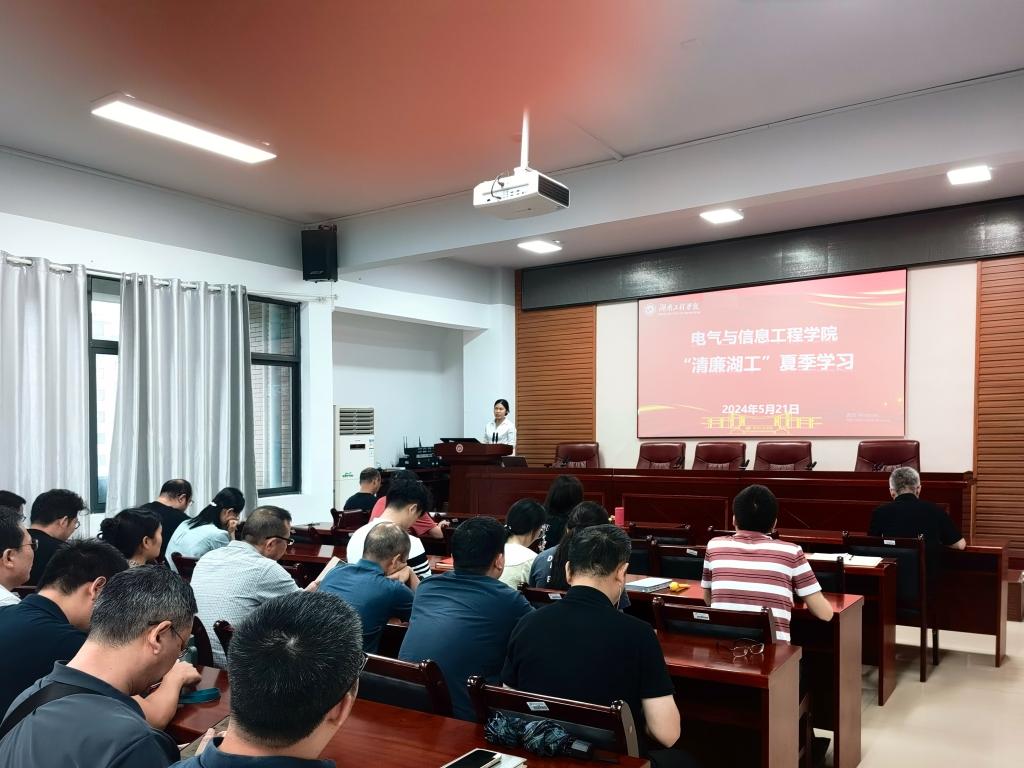 为巩固学校风清气正政治生态和良好育人环境,进一步加强师德师风建设,提升教师法纪意识,5月21日下午,海角在线社区视频在电气楼408开展“清廉湖工”夏季学习暨师德师风专题法纪教育大会,学院全体教职工参加会议,会议由学院党委书记谢卫平主持。