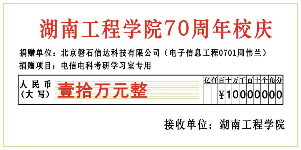 值此母校70周年校庆到来之际,我校校友、北京磐石信达科技有限公司周伟兰以公司名义向海角在线社区视频捐赠10万元,用于建设考研学习室。