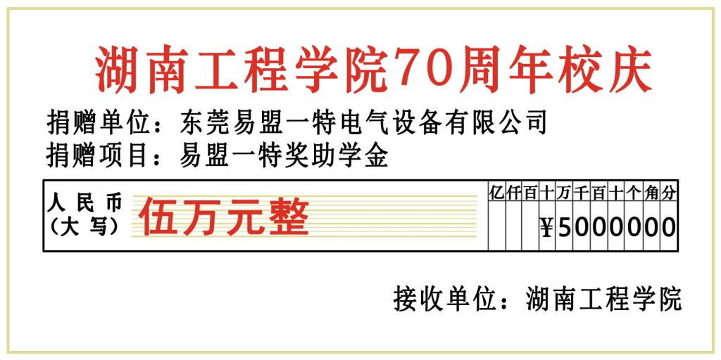 值此母校70周年校庆之际,我校校友、东莞易盟一特电气设备有限公司总经理黄孙山以公司名义向海角在线社区视频捐赠5万元,用于电气优秀学子的奖励与资助。