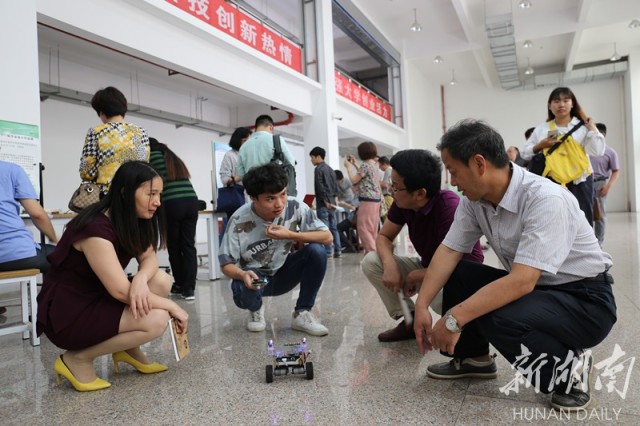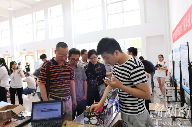 此次毕业设计作品展暨公开答辩由电气信息学院主管教学的副院长胡慧组织,她介绍道:“设计理念和方法确定以后,每一位毕业生大概花了15-30天的时间制作出实物,经过反复的调试之后作为展示作品亮相。此次毕业作品展的思路借鉴了国外一些大学的经验,展示和汇报的过程对毕业生而言是一次真刀实枪的锻炼。”