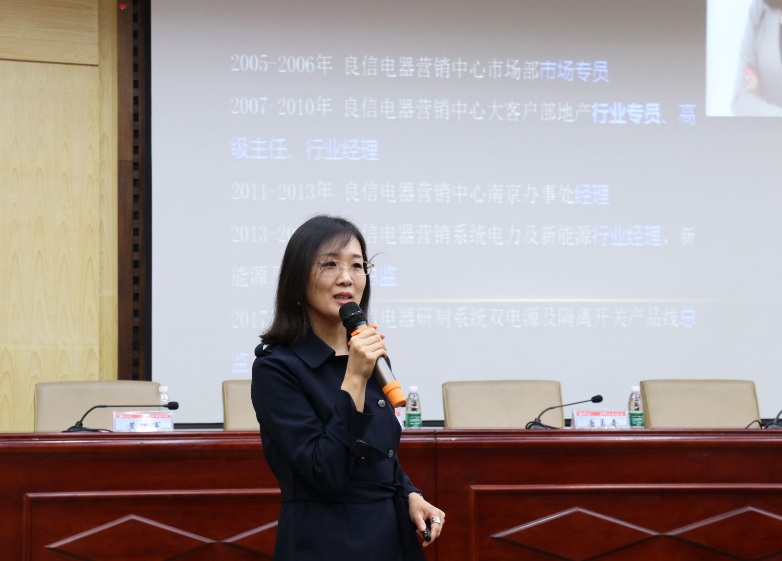 仪式伊始,唐院长致辞,他回顾了十年来上海良信电器与学院校企合作的情况,对企业给予学校办学的大力支持表示了感谢。他说,良信大学生俱乐部作为探索校企合作的新模式,可以说是开了一个好头,相信这种深层次的合作一定能够推动学院专业方面的建设,提升同学的职业素养。随后由魏佳男与唐勇奇共同为俱乐部揭牌,黄望军宣读了首届俱乐部运行成员名单。之后,在热烈的掌声中,魏佳男将会旗授予了首届俱乐部理事会会长李苹。最后,魏佳男总结讲话,她肯定了电气学院多年来为企业发展提供的人才支持,并代表企业对俱乐部的发展提出,希望俱乐部以企业提供的实践平台和支持为根本,通过俱乐部成员的宣传和推动提高公司在学校的知名度和影响力,促进企业和学生的双边交流。