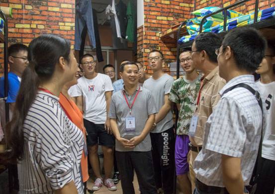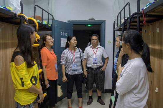 9月16日晚上,电气信息学院领导班子来到滨江学生公寓,集体下寝慰问新生,将学院的关怀送入新生寝室。