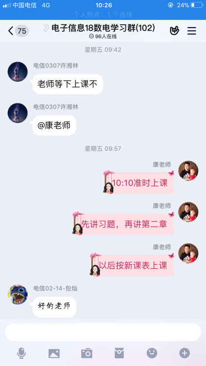 钟老师主讲《工厂供电》这门课程。课前,钟老师早早地在学习通上开通签到任务,同时公布关于本堂课的小测验。正式上课时,钟老师开通了QQ网络电话直播上课,课间,他以实际案例引入,富有磁性的声音把课讲得声情并茂,不仅学生爱听,连家长们也纷纷加入了他的网课,成为他的“粉丝”。