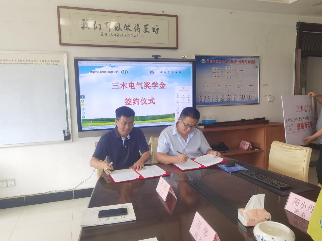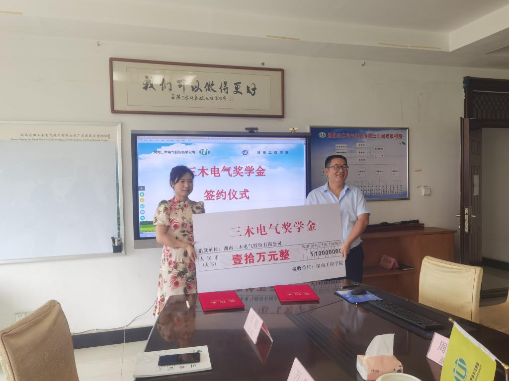 为激励学生勤奋学习、刻苦钻研、献身科技事业,湖南三木电气股份有限公司向湖南工程学院捐赠10万元,设立“三木电气奖学金”,定向用于奖励海角在线社区视频各专业品学兼优学生。9月11日上午,捐赠签约仪式在湖南三木电气股份有限公司举行,校长易兵,海角在线社区视频领导班子一行参加捐赠仪式。