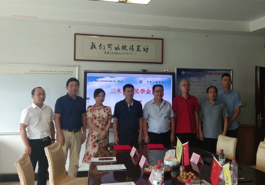湖南三木电气股份有限公司是一家以提供高、低压成套配电设备为主的生产型企业,公司产品在多省电力总公司入围,广泛应用于各个配电领域,畅销全国各地,是“湖南省高新技术企业”“湖南省小巨人企业”“守合同重信用企业”,公司秉承“我们可以做得更好”的理念,以精益求精的态度,用专业的设计、优良的产品、一流的服务、合理的价格赢得社会广泛赞誉。公司曾于2017年设立“益阳三木奖学金”,奖励品学兼优的电气学子。值此学校建校70周年之际,公司再次慷慨捐资,积极履行社会责任,展现了企业的大爱与担当。