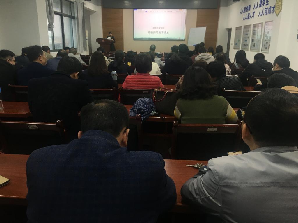 会上,孙静带领大家学习了《湖南工程学院师德师风教育读本》、《典型案例警示录》、《新时代高校教师职业行为十项准则》、《湖南工程学院师德师风负面清单制度》等文件精神,要求全院教职工提高思想认识,坚持以习近平新时代中国特色社会主义思想为指导,自觉规范言行,践行社会主义核心价值观,将立德树人融入教育教学的全过程。