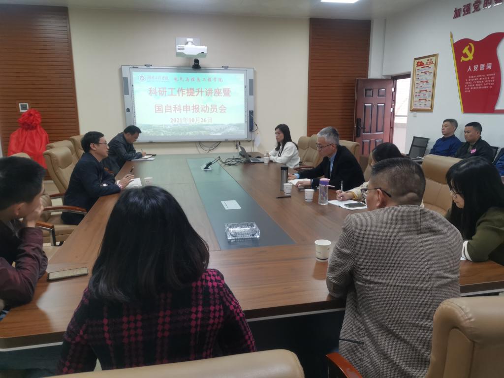 10月26日下午,海角在线社区视频在电气楼407召开科研工作能力提升讲座暨国家自然科学基金申报动员会,副校长罗毅平出席,学院部门老师参加。会议由副院长孙静主持。