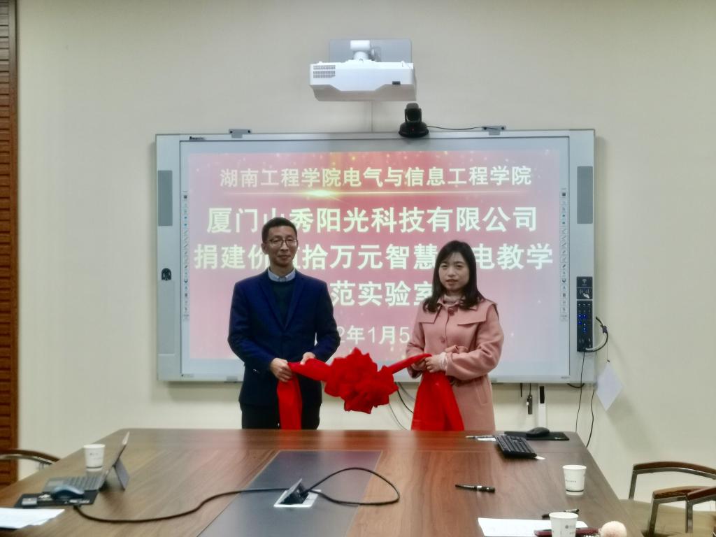 院长万琴对叶秀峰一行的到来表示欢迎,感谢公司向学院捐赠价值十万元的智慧用电教学示范实验室设备、零碳排放光伏并网箱。她希望今后双方在更多领域开展更加广泛的合作,树立起校企合作的典范。