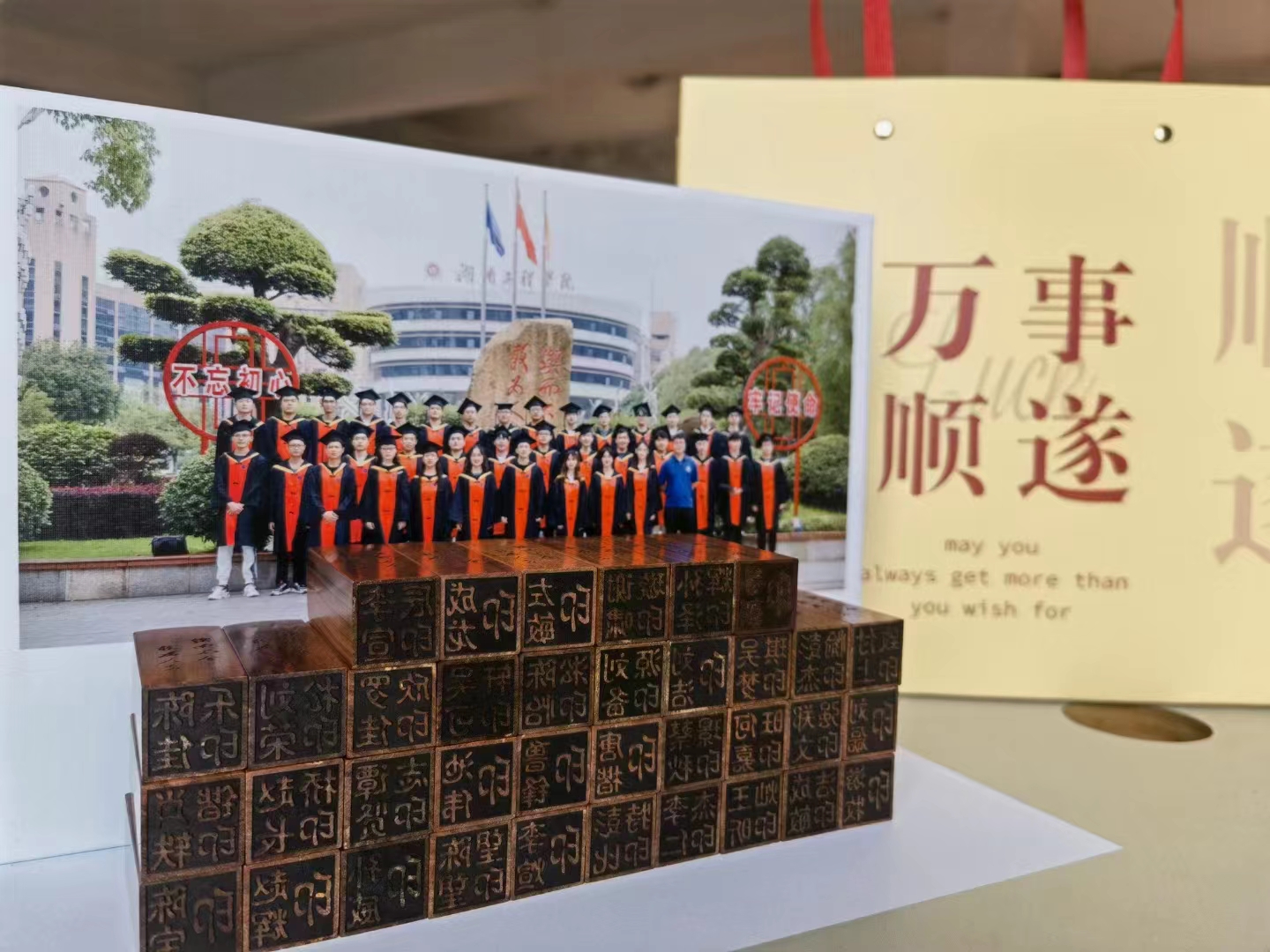 部分班级还定制了专属印章,引导同学们毕业后情系母校。印章由学校的校徽、校训,以及学生的班级、姓名、学号构成,希望同学们做一名“重诺守信”的湖工学子。