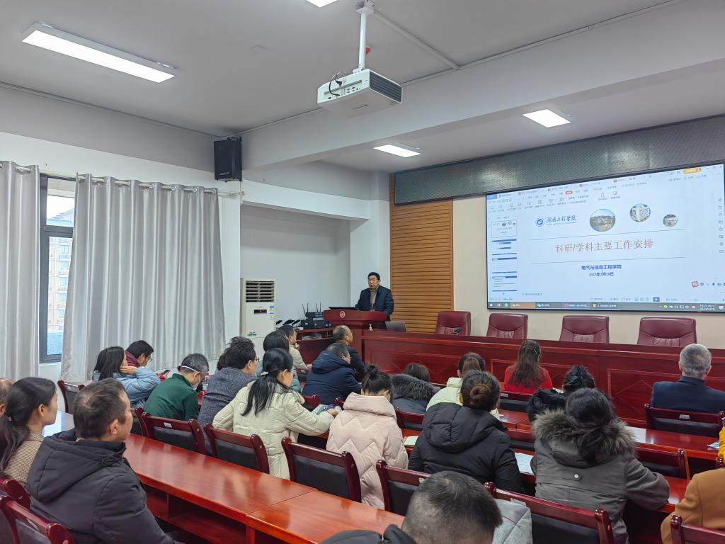 院长万琴作《深化“全局观、系统观、优化观”,推进高质量发展》的报告,围绕专业建设、教学质量建设、科研工作、产业学院与实验室建设、师资队伍建设等方面展开介绍,回顾了过去一年学院所取得的成果,并部署了本学期的重点工作。万琴指出,学院要努力建立健全“三闭环”人才培养体制机制,不断提升人才培养水平;要以学科建设为龙头、专业认证为标准,持续加强学科专业建设;要以学校“申硕”为中心任务,有序开展教学、科研等各项工作,助力学校发展。随后,其他班子成员分别就各自分管工作进行了汇报,对本学期即将开展的具体工作进行了部署和规划。