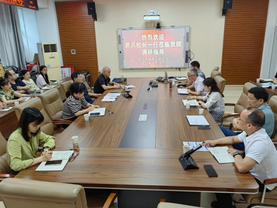 6月13日上午,校长易兵一行到海角在线社区视频调研教育教学和就业工作。学院领导班子、各教研室主任、博士和教授代表参加调研座谈。
