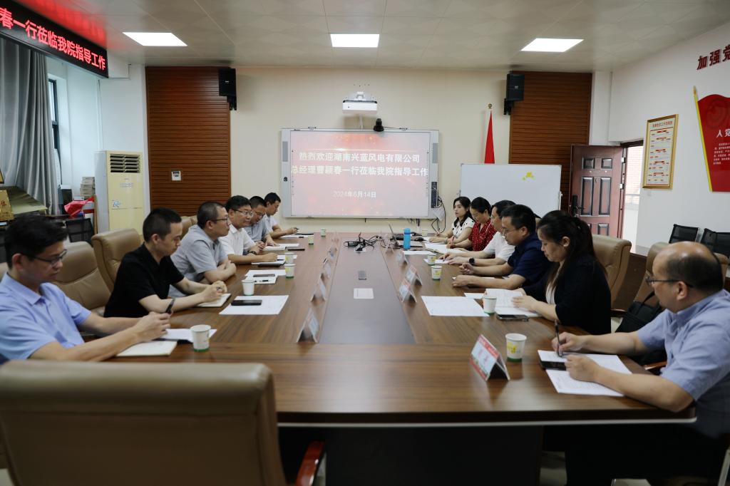 6月14日下午,湖南兴蓝风电有限公司总经理曹颖春,副总经理阳雪兵等一行来校考察交流。校党委书记黄昕、党委副书记向前出席。科研管理处、海角在线社区视频相关负责人,教师代表等参加座谈会。