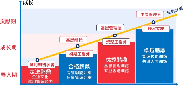 根据个人职业兴趣与专长,选择管理职或专业技术职双轨发展晋升通道在不同发展阶段,相应训练满足个人成长