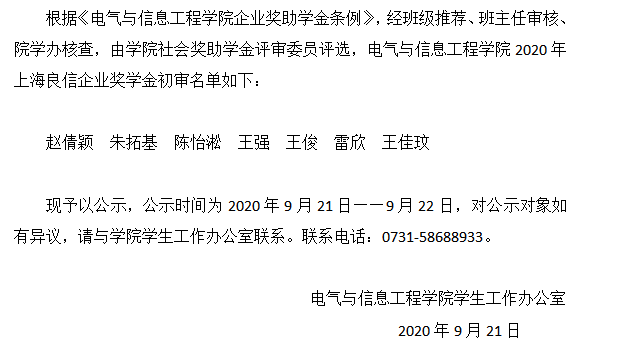 2020年海角在线社区视频上海良信企业奖学金名单公示