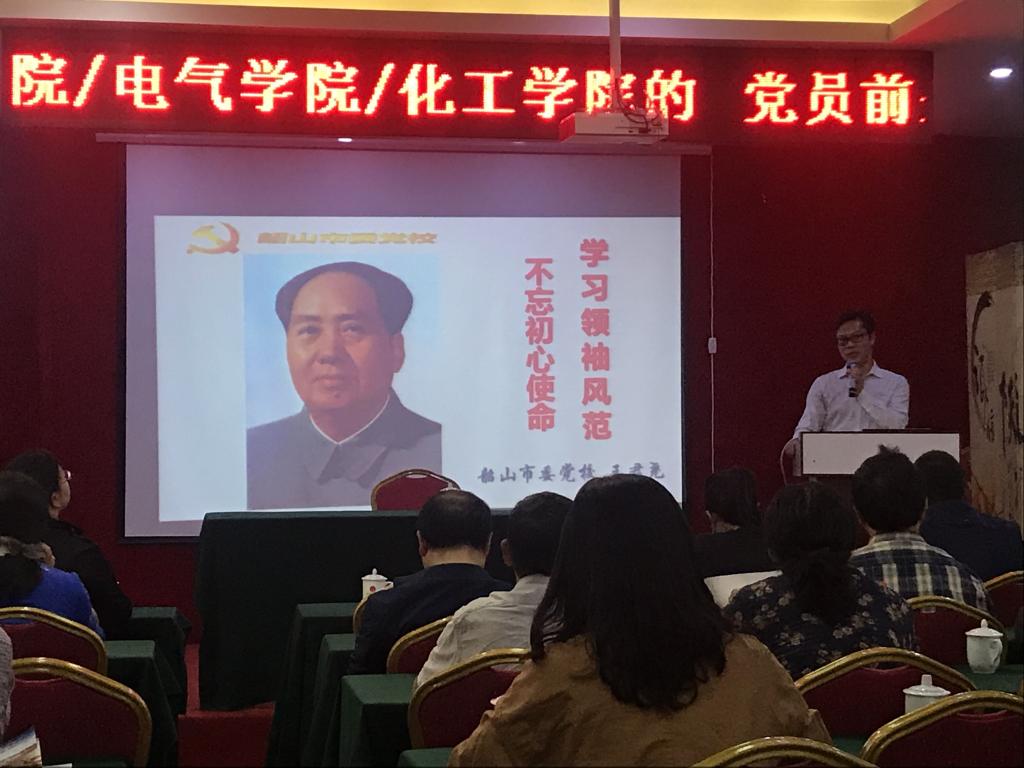 当天下午,学院党员听取了《学习领袖风范 不忘初心使命》专题辅导,由中共韶山市委党校副校长王君尧主讲。他从信念、意志、学习、生活和胸怀等五个方面,精辟地概括了毛主席的光辉一生,让主席风范活灵活现、光彩照人,更加激励我们凝聚力量,更好地建设伟大工程、推进伟大事业、实现伟大梦想。