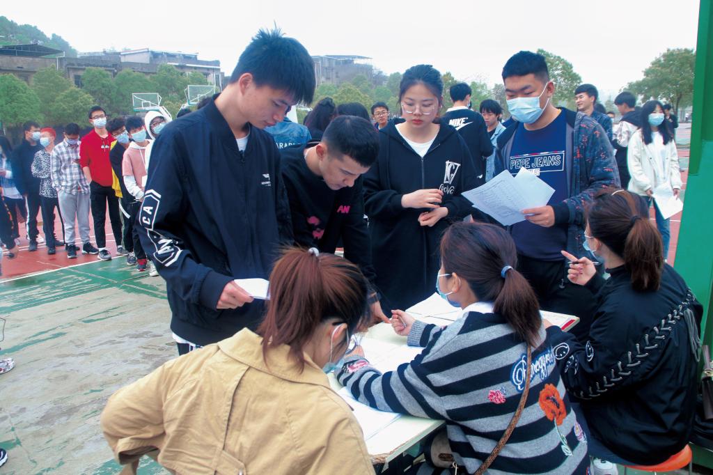 “请同学们戴好口罩,领取并认真阅读知情同意书,有序排队接种”,“班长组织本班同学填写接种登记表”。同学们按照时间安排,陆续到达学校体育馆前的篮球场处,登记姓名、领取知情同意书,佩戴口罩,然后有序进入“方舱接种点”,接种完成后遵照医嘱留观30分钟,确定无异常后再离开。