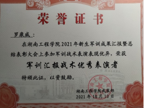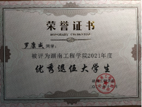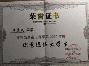 1. 2020、2021连续两年被评为湖南工程学院优秀退伍大学生