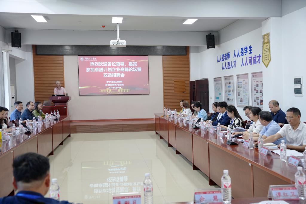 深圳市盛弘电气股份有限公司、特变电工衡阳变压器有限公司等公司相关负责人代表企业发言,各企业代表进行座谈交流。企业代表一致认为,我校毕业生基本功扎实、专业动手能力强、吃苦耐劳,希望今后校企双方在更多领域深化合作,推动产学研深度融合。
