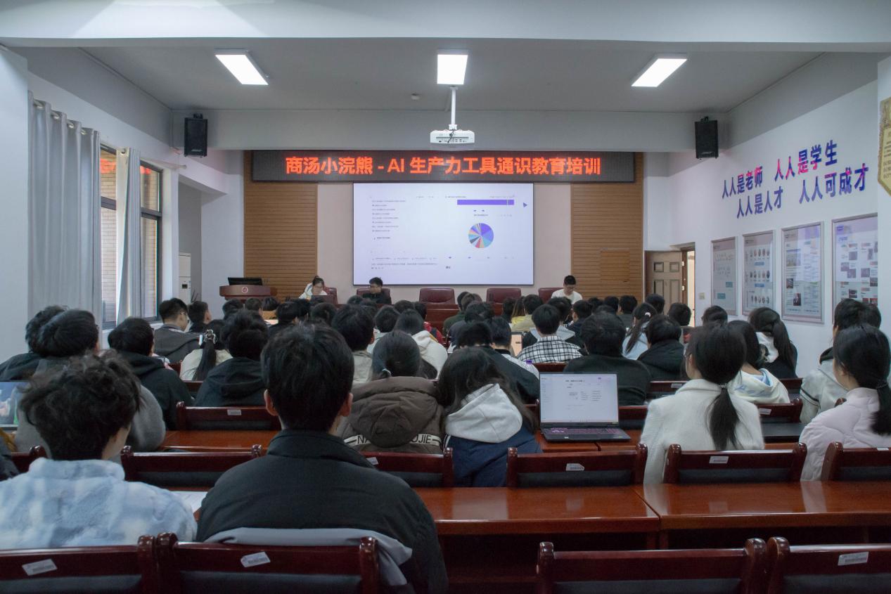 揭牌仪式后,商汤科技技术总监莽维奇以《从业20年到AI时代:技术人如何抓住未来十年》为主题进行分享,从个人职业路径出发,系统梳理了人工智能产业的发展趋势,为学生提供了理解行业变化的视角。商汤科技产品运营经理李佳欢带来《小浣熊家族产品介绍——AI时代的智能生产力助手》主题讲解,围绕软件开发、数据分析、任务规划等典型场景展开演示,并带领学生进行现场操作,帮助大家理解AI工具如何提升实际工作中的效率与质量。