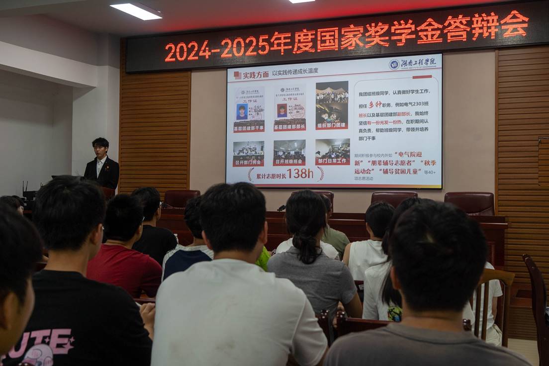 2025年10月9日,湖南工程学院海角在线社区视频在电气楼408举行2024-2025学年国家奖学金现场答辩会。学院党委书记张玉东、学生工作部副部长李延平、自动化教研室主任汪超、电气工程教研室教师钟义长、学生辅导员吕思凡担任评委,现场200余名2024级、2025级学生共同聆听九位优秀学子的精彩汇报。九名优秀学子依次登台,围绕思想建设、学业成绩、科研竞赛、社会实践与志愿服务等方面,全面展示个人成长历程与卓越成果。他们中既...